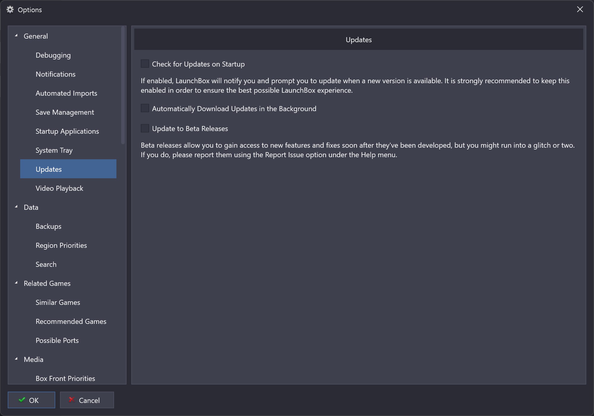 In rare cases, you may need to revert to a previous version of LaunchBox. While downgrading is generally safe, we strongly recommend backing up your data first: