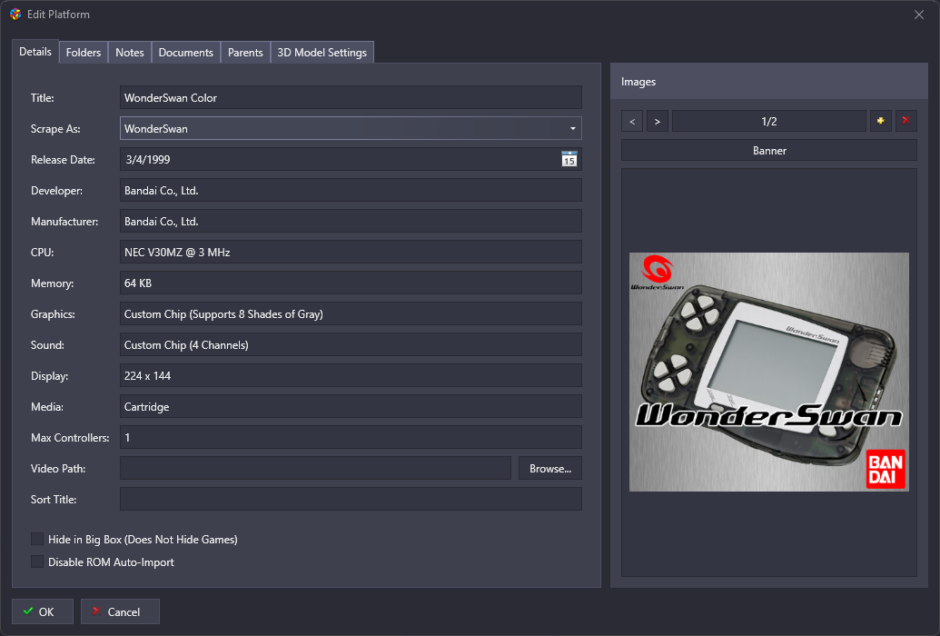 Then WonderSwan Color may not match unless its Scrape As value is also set to WonderSwan. Other common examples include the NeoGeo Pocket Color , PSP Minis and Famicom Disk System